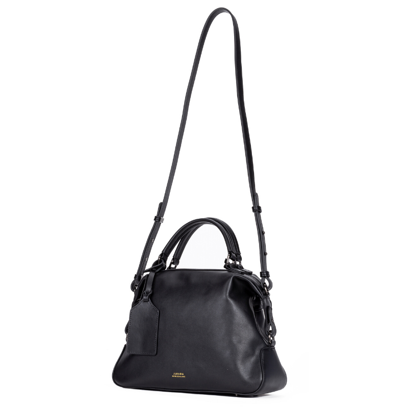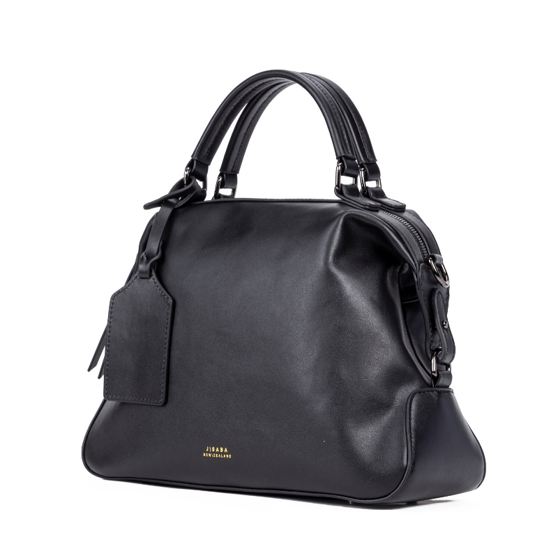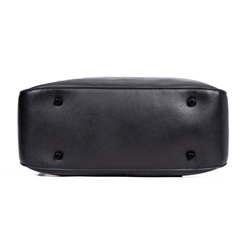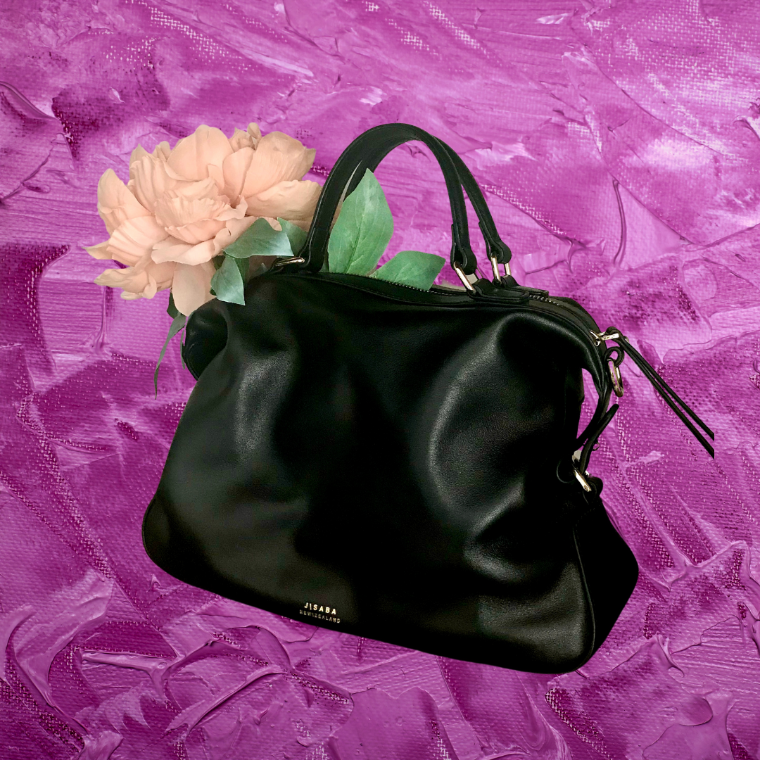 A smooth deep black nappa leather grab shoulder bag with a pink suede interior and gunmetal hardware. This roomy highly functional bag features a removable leather strap and a gold chain strap. The interior is equipped with a zip pocket, an open pocket a key chain lanyard.