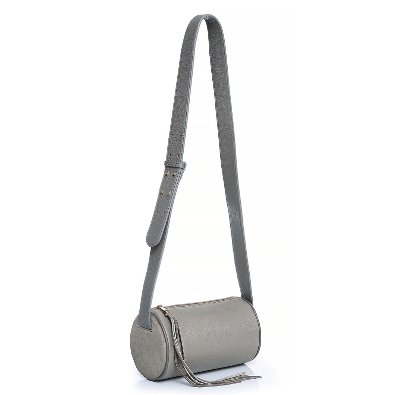 The cross body/sling is constructed using handpicked premium soft pebble beige and grey teamed with a beige pony effect cow hide.