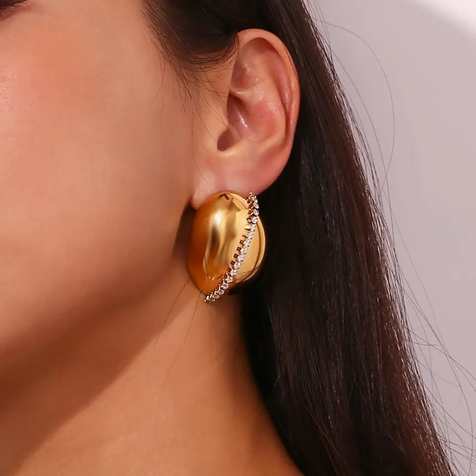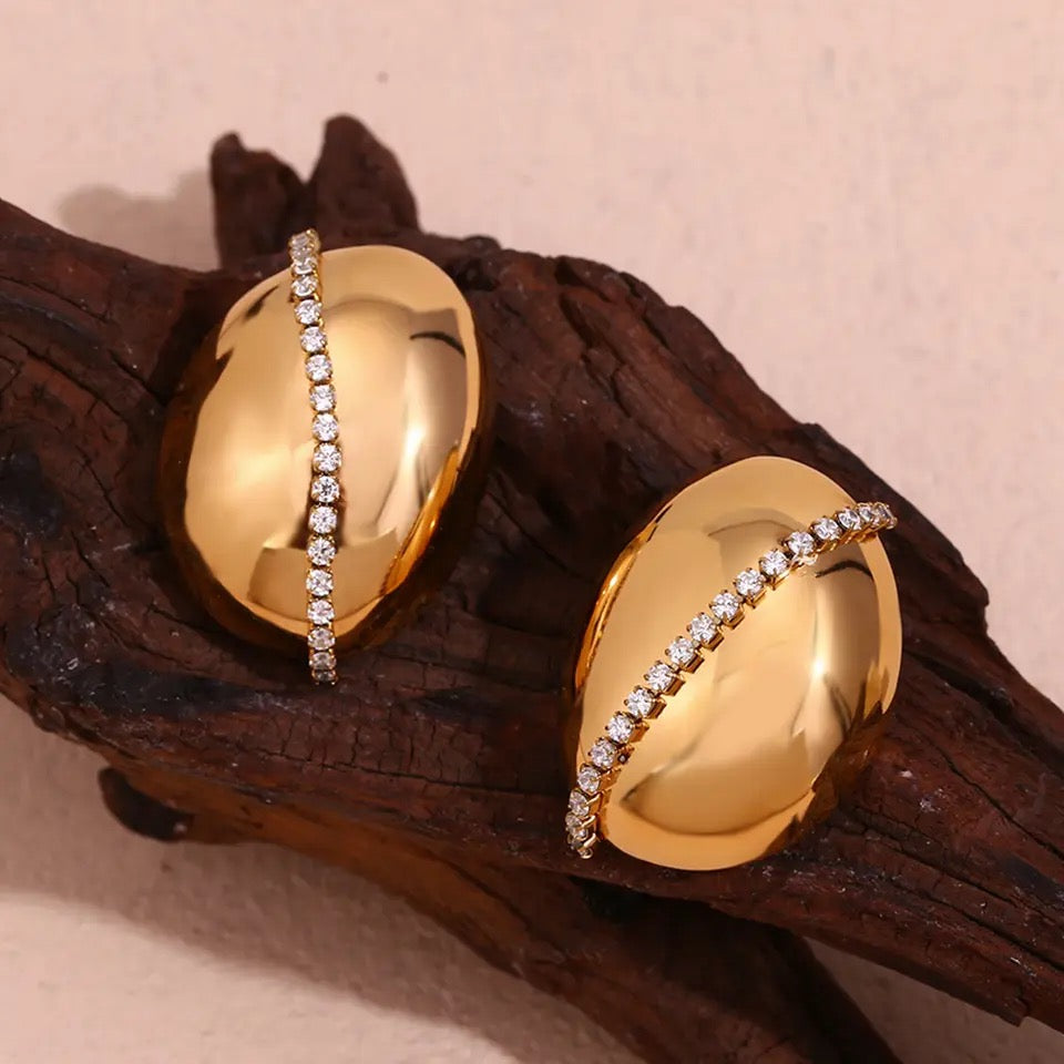 The statement zircon oval button 18k gold plated earrings with zircon trims.
